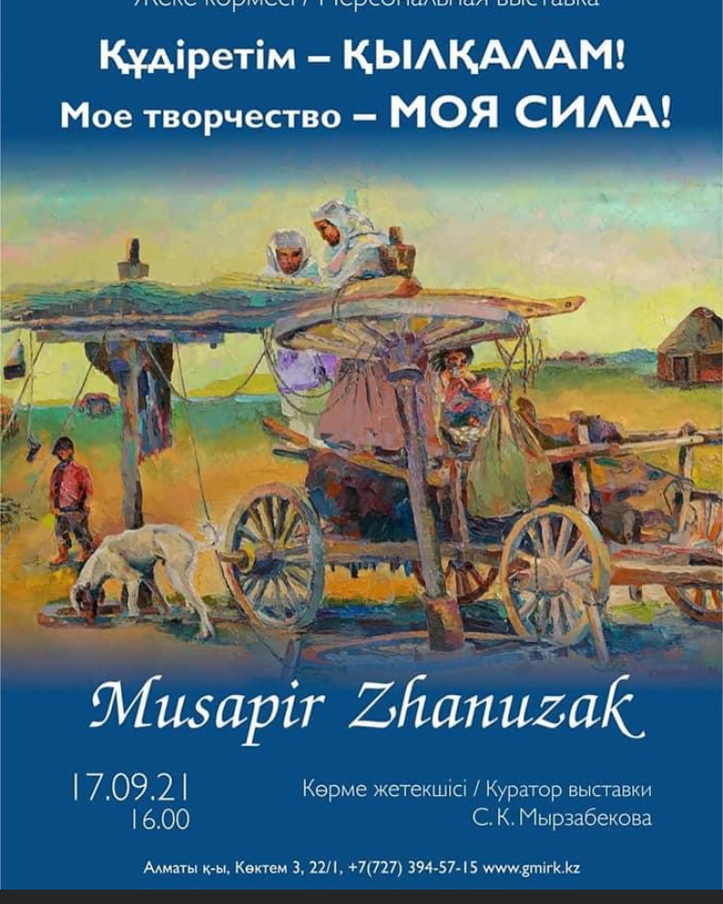 17 сентября 2021 года в Государственном музее искусств Республики Казахстан им. А.Кастеева состоялось торжественное открытие персональной выставки Заслуженного деятеля РК, члена Союза Художников РК, члена Евразийского Союза Художников, академика Академии Художеств РК, члена Союза Журналистов РК, Жанузака Мусапира - «Моё творчество-моя сила».