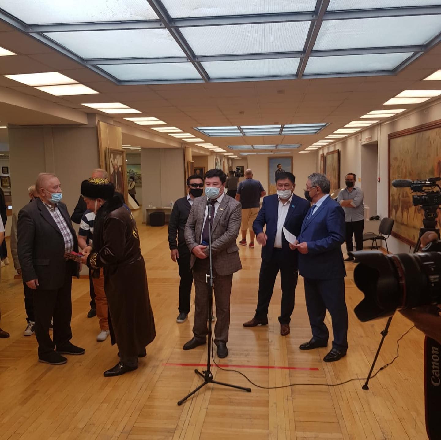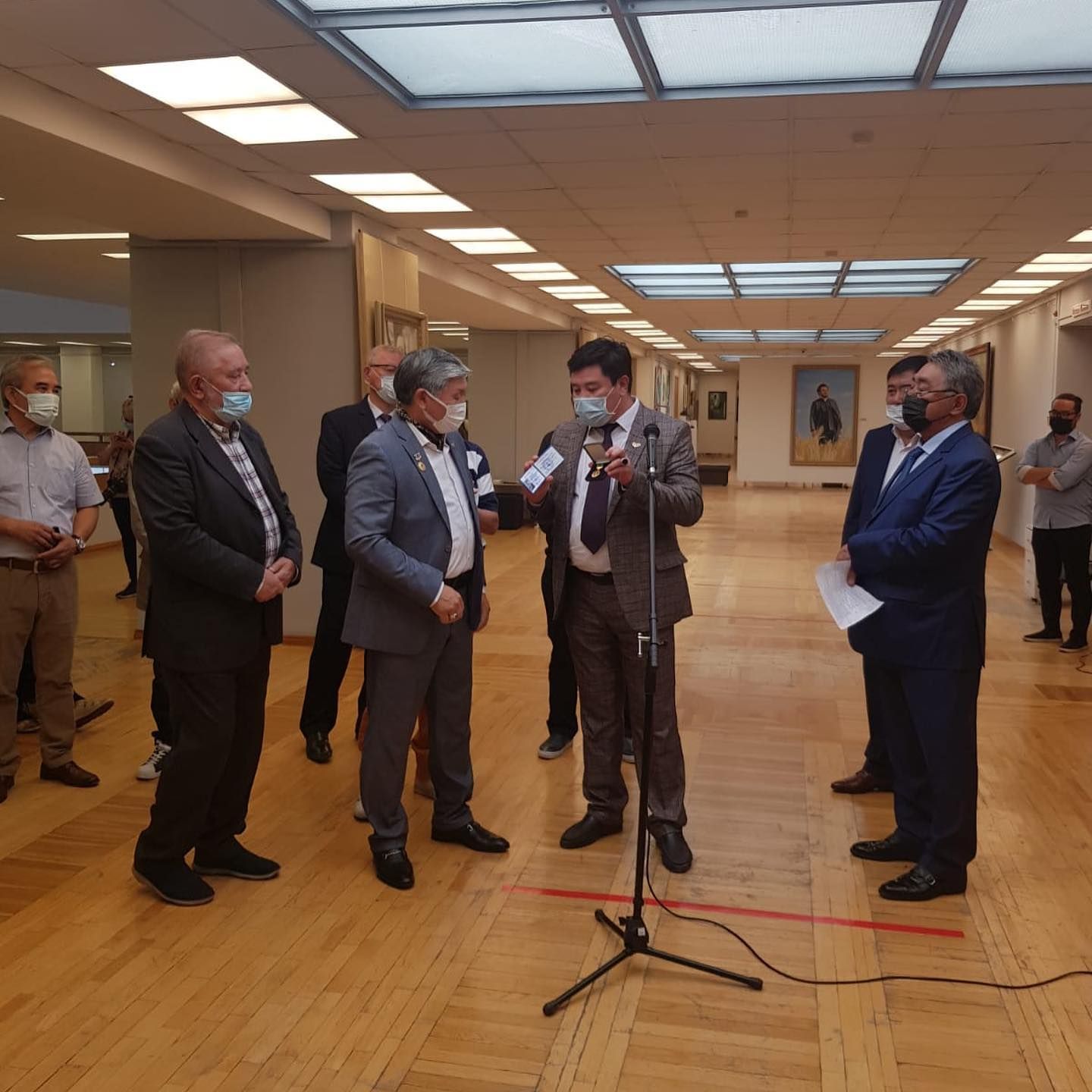 Он поздравил Жанузака Мусапира с открытием персональной выставки, а также наградил медалью «Кұрмет» Союза Художников г.Нур-Султан, за вклад в изобразительное искусство Казахстана.