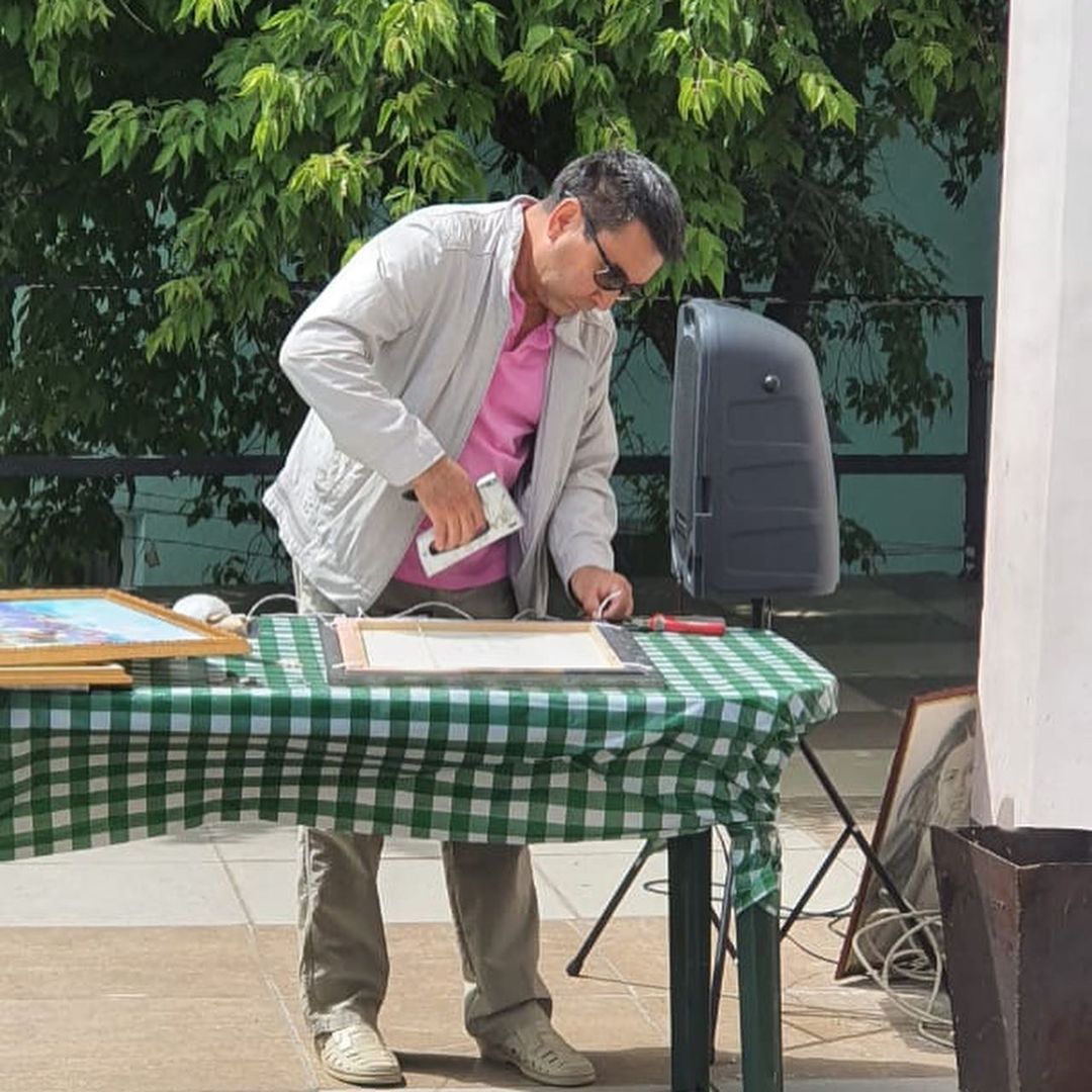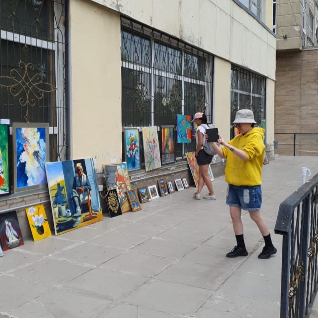 27 июня в воскресный день на террасе Союза Художников, мы устраивали свой Арбат. Напомню, что мы хотим знакомить наших горожан с Союзом Художников. Чтобы люди знали о художниках, о нашей Галерее. Эта замечательная идея работать на террасе, пришла к нам недавно.