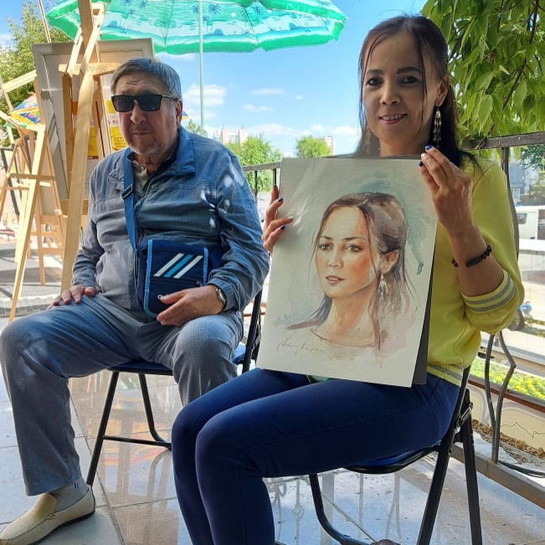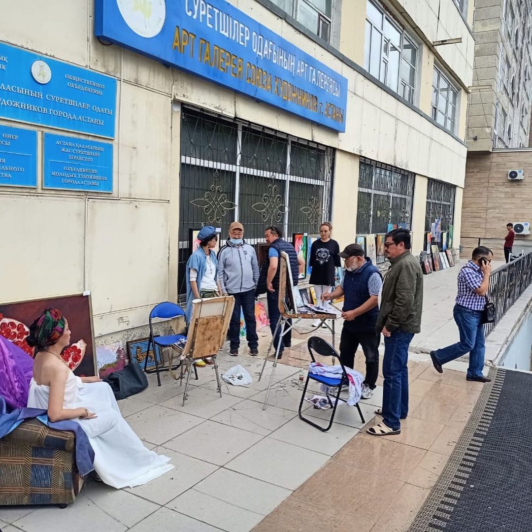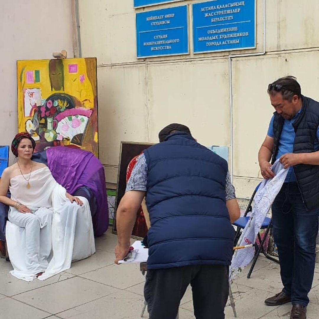 Также, люди увидели, как художники писали с натуры. Натурщицей была арт-менеджер Галереи Акжан. Очень интересный был образ, который помогла создать Журкабаева Г. Всё было шикарно. Отдельная благодарность ей. Очень прекрасный был день! Всем огромное спасибо за участие!