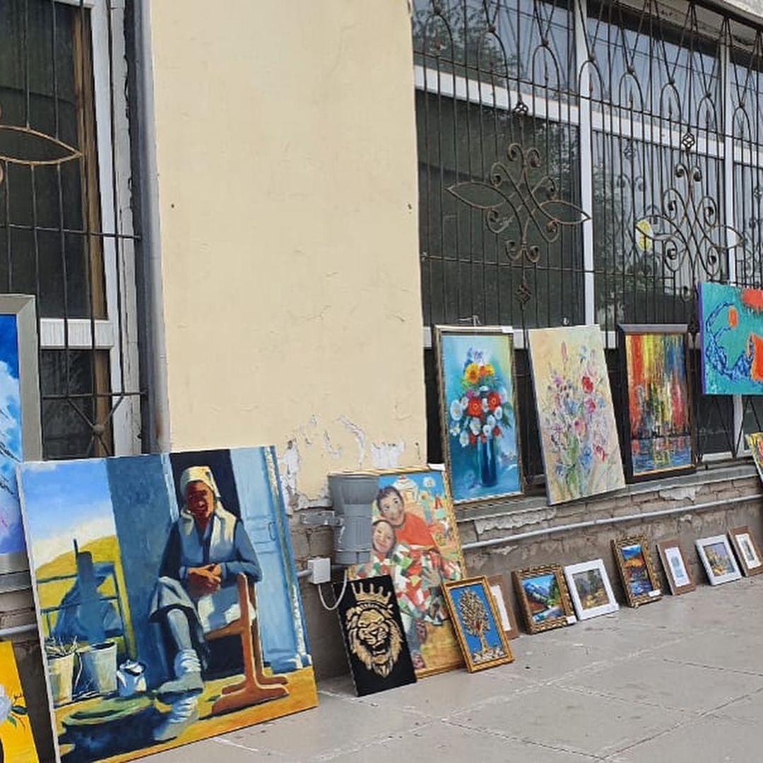 Друзья всем привет! У нас была идея выставить картины наших Художников на террасе перед зданием Союза Художников. Чтобы привлечь внимание общественности, чтобы люди приходили к нам, интересовались.