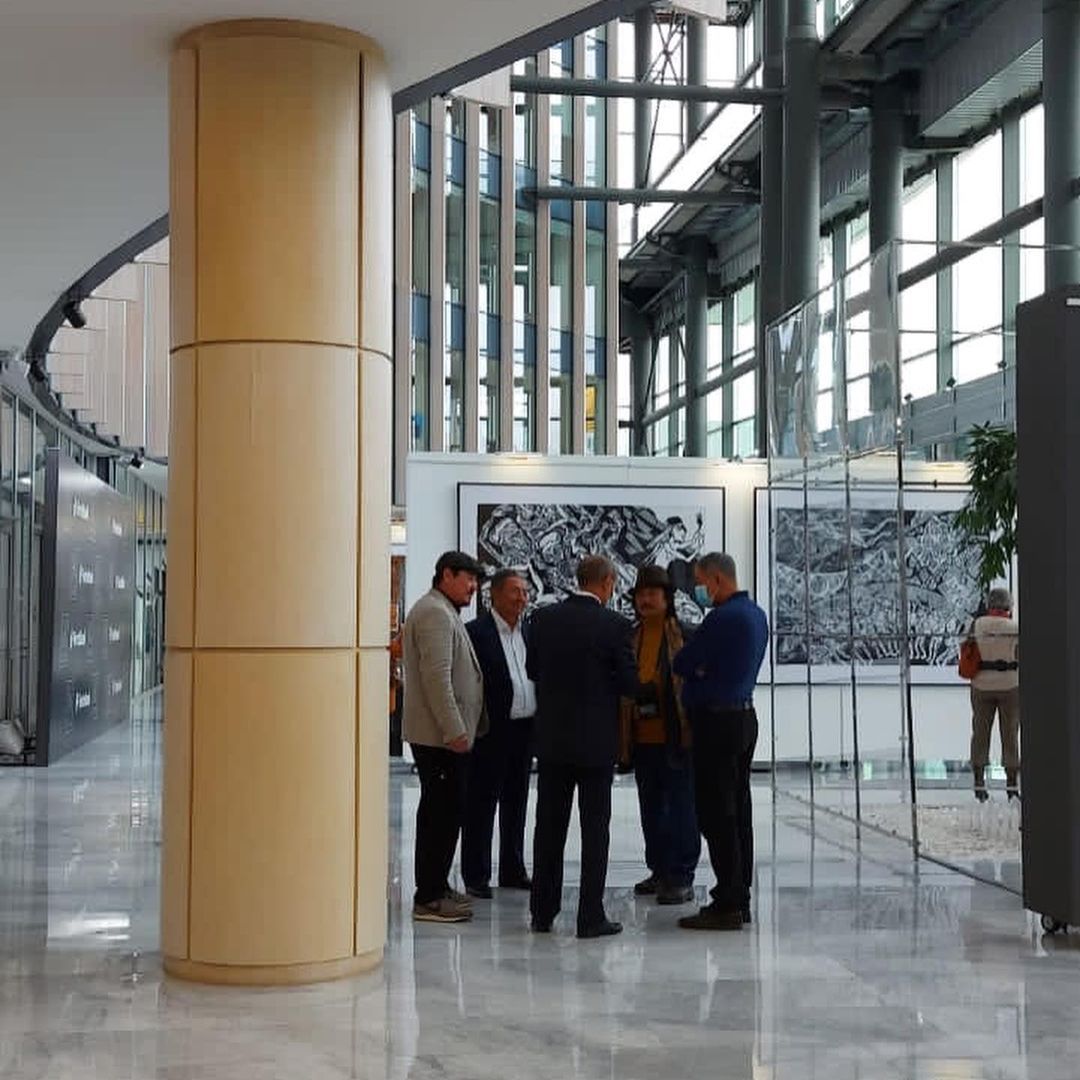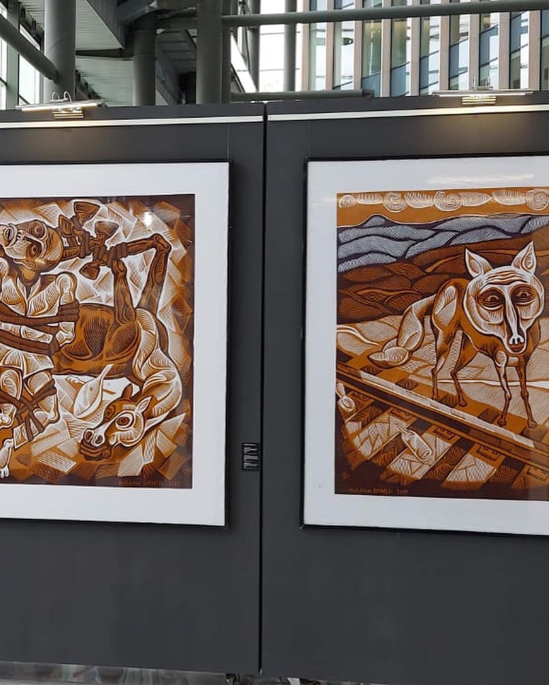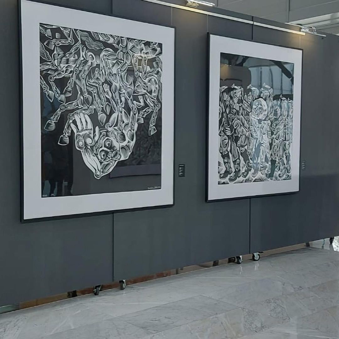Зрителям представлены удивительные графические произведения, поражающиеся своим масштабом и наличием большого количества деталей. Проект назван - NOMAD,BLACK&WHITE. Черный и белый - это два инструмента, которым пользуется художник чтобы создать все свои задумки и воплотить их в жизнь. Линогравюра - способ гравирования на линолеуме самое молодое искусство, но технология существовала очень давно и была забыта.
